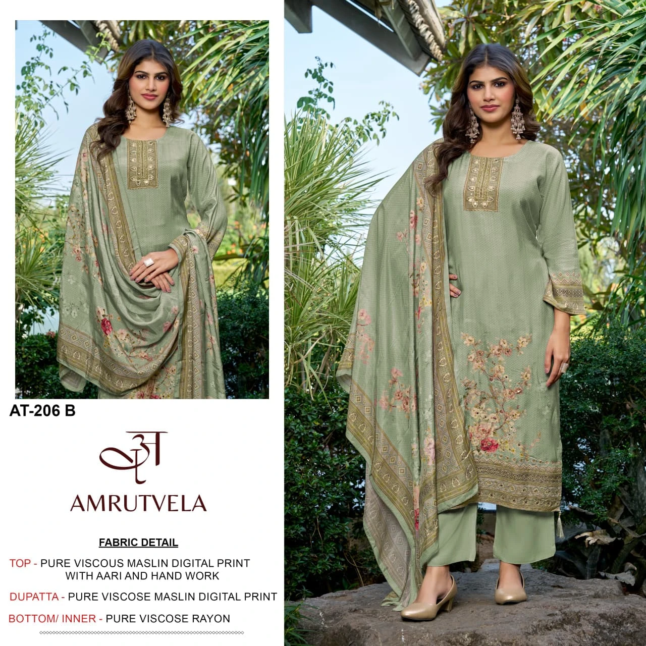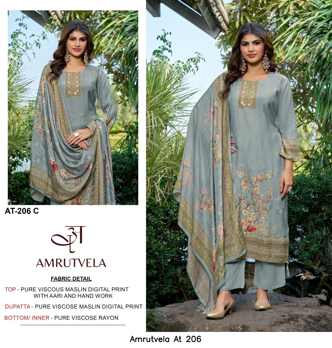 - Top Fabric: Pure Viscose Muslin Digital Print With Aari And Hand Work