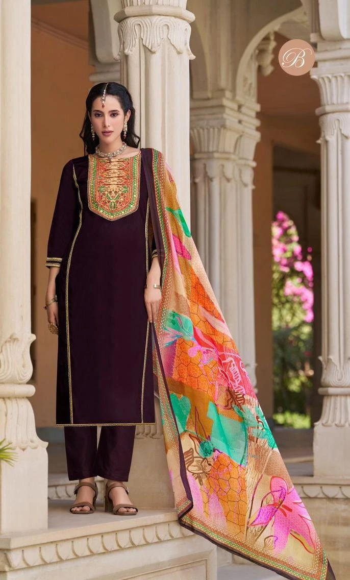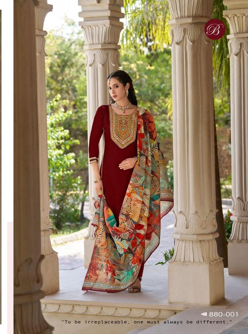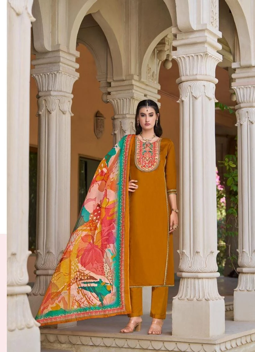 - Top Fabric: 100% Heavy Jam With Digital Neck Heavy Handwork And Beautiful Glace (2.50 Meters)