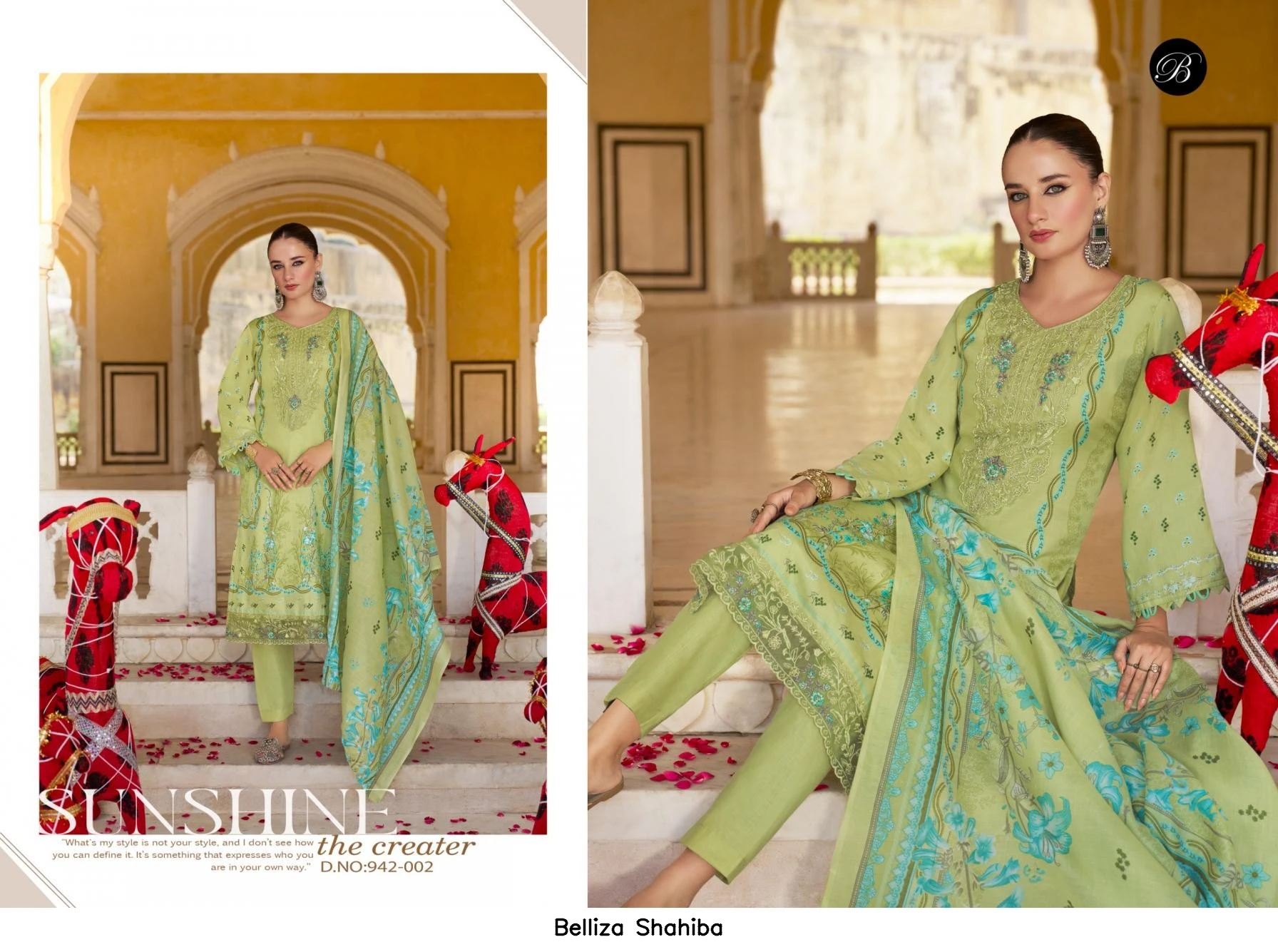 - Top Fabric: 100% Pure Jam Cotton Digital Prints With Exclusive Neck And Daman Embroidery (2.50 Meters)