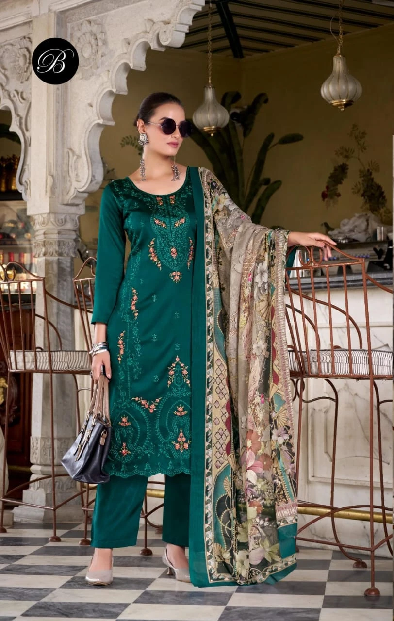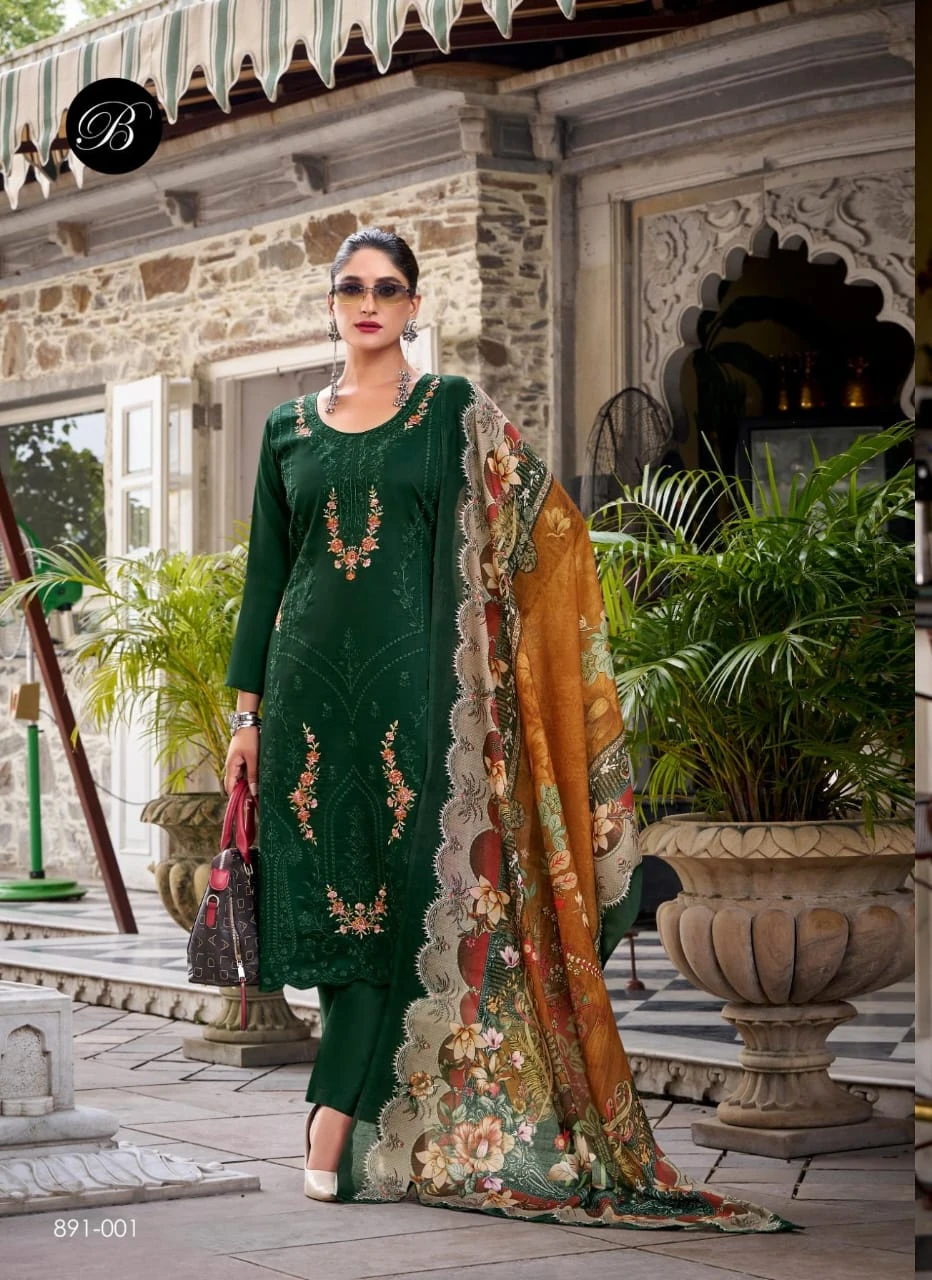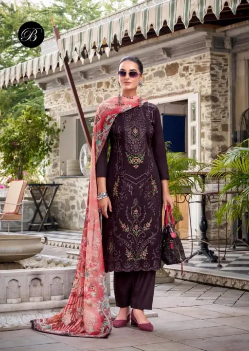 Top: 100% Pure Heavy Jam With Designer Heavy Embroidery Work + Heavy Daman Boring Work With Scalloping (2.50 Meters)