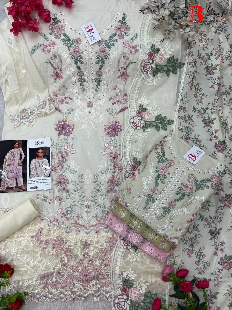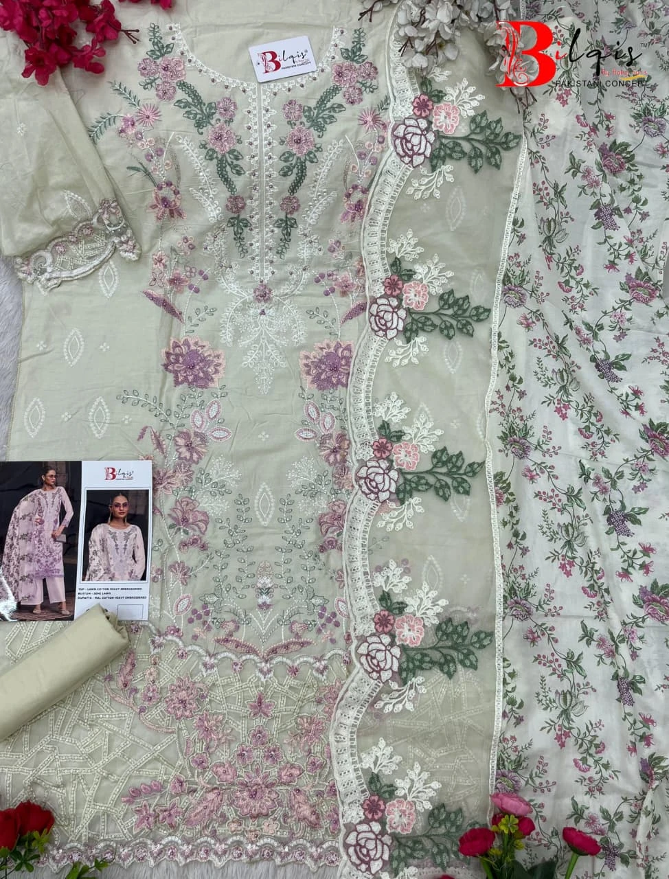 - Top Fabric: Cambric Lawn Heavy Embroidered With Pearls
