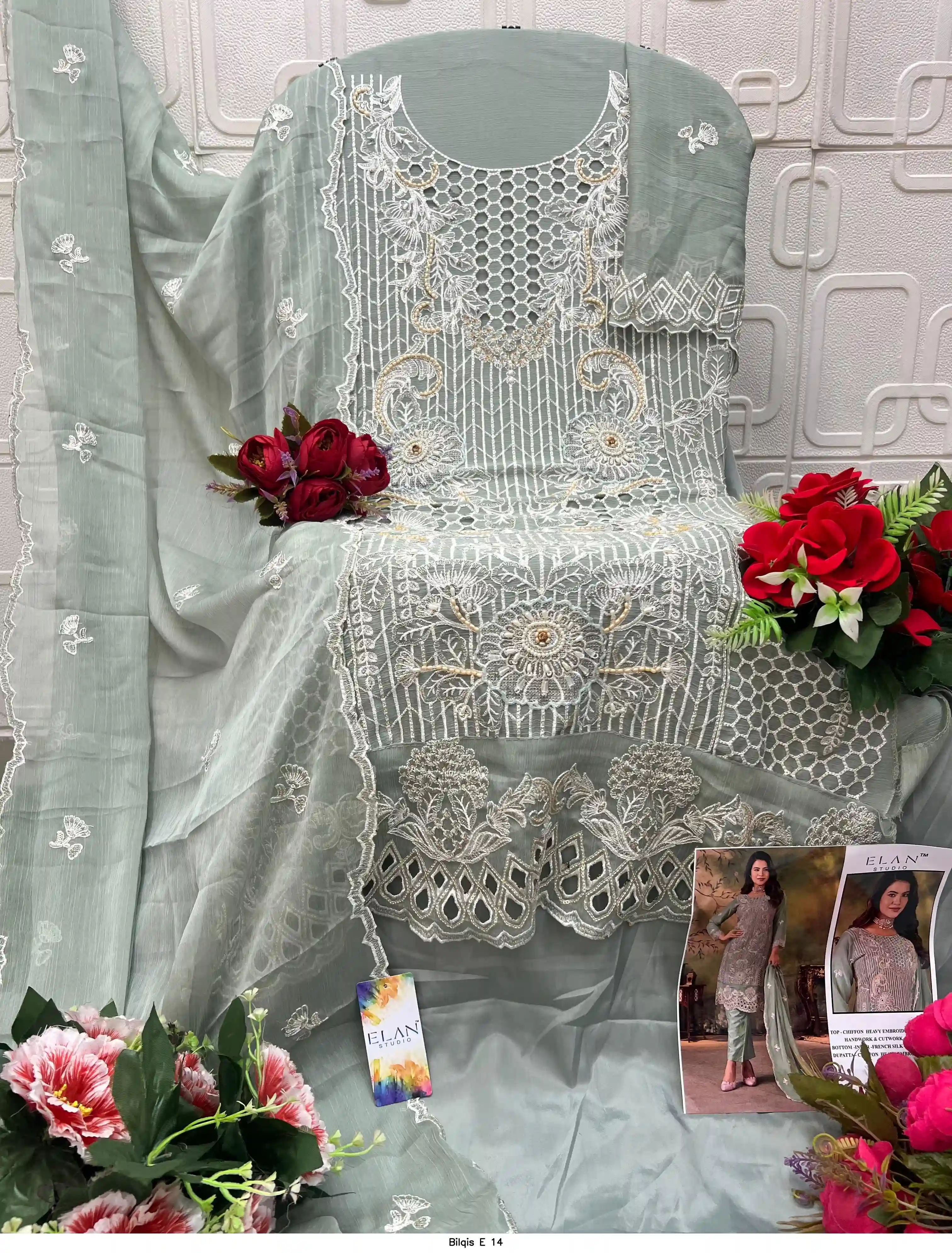 - Top Fabric: Chiffon Heavy Embroidered With Handwork & Cutwork
