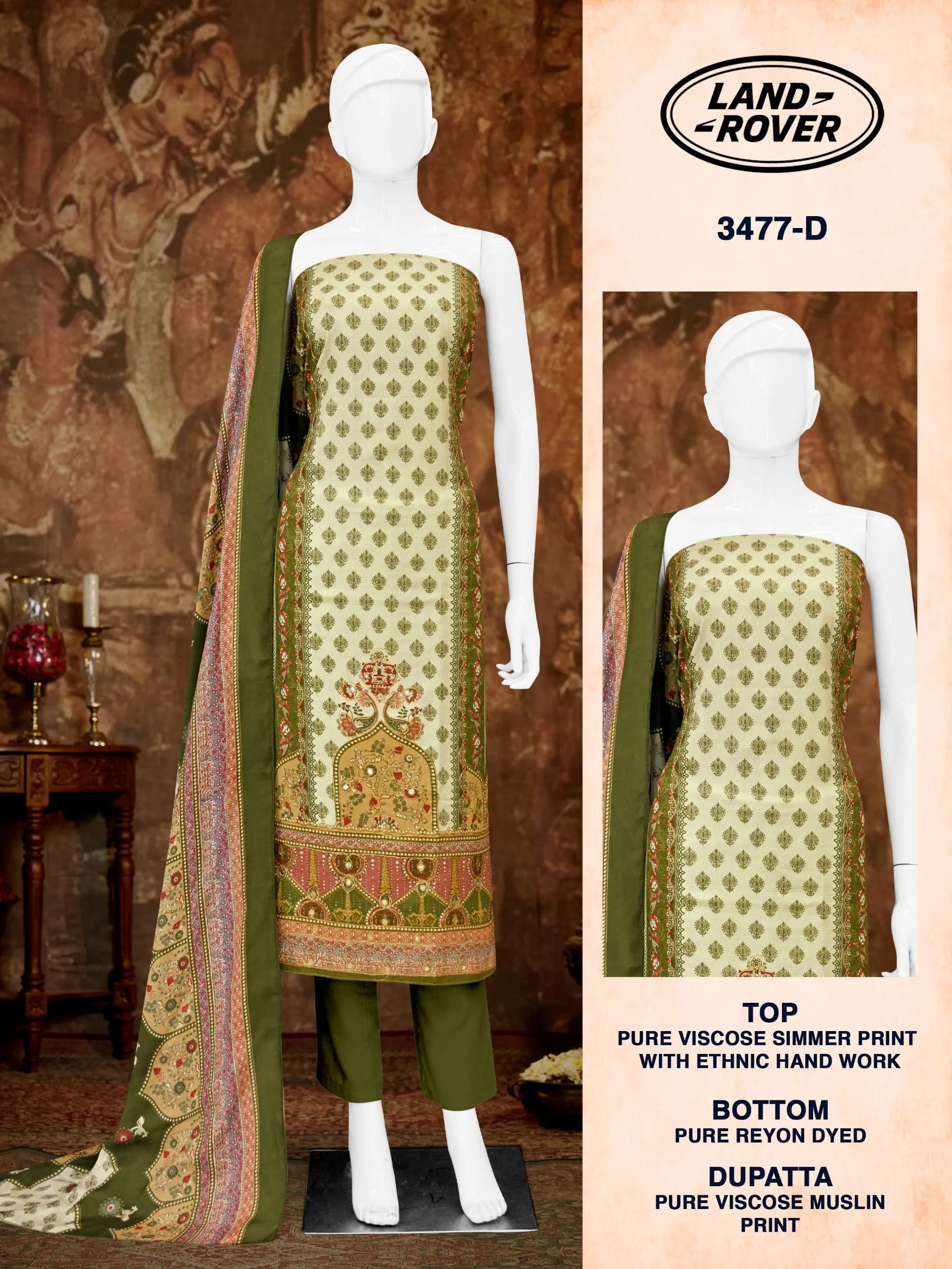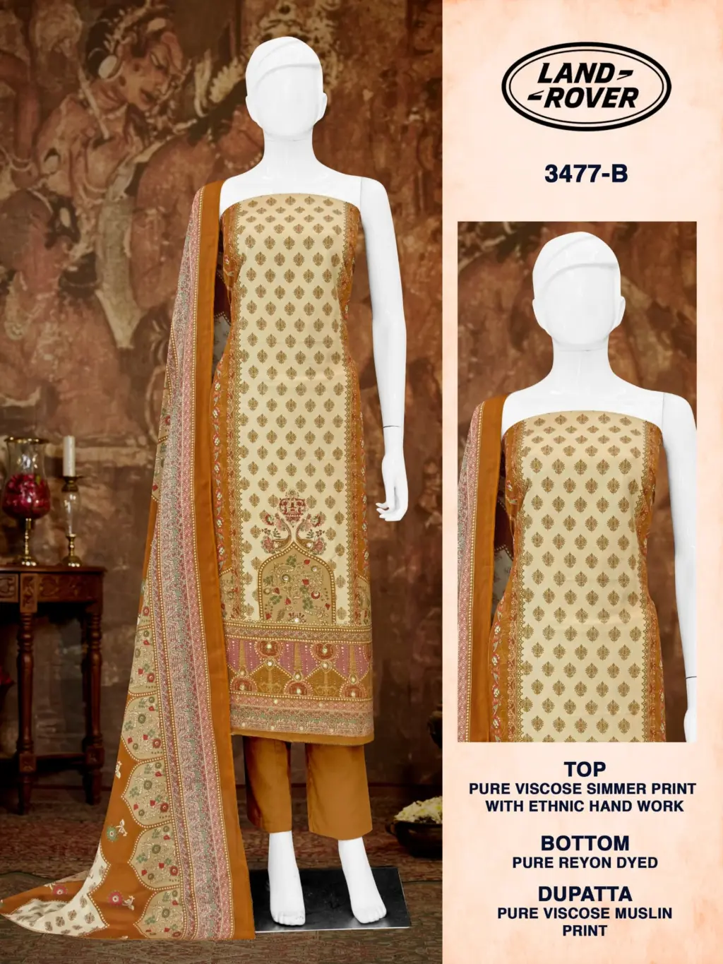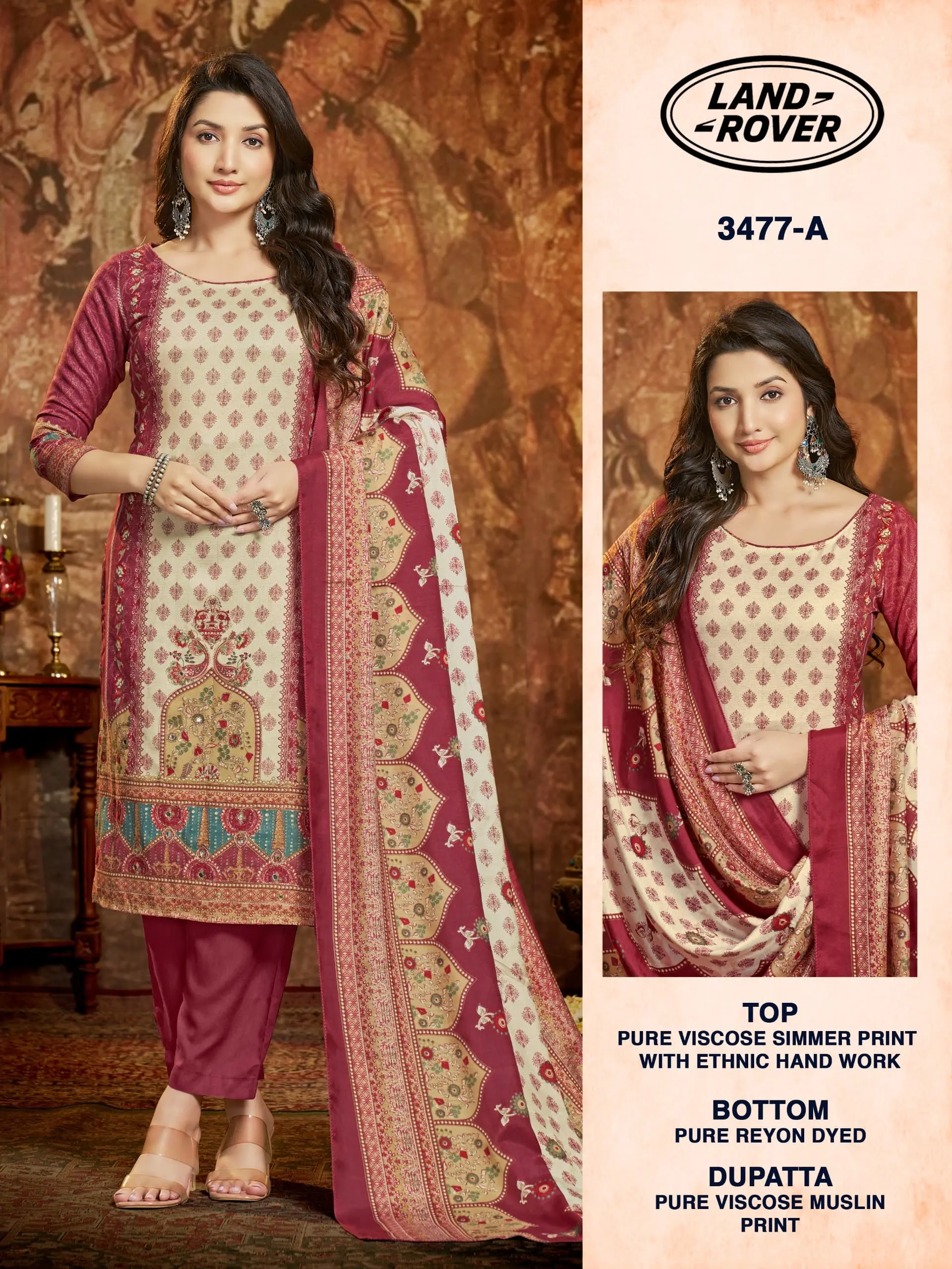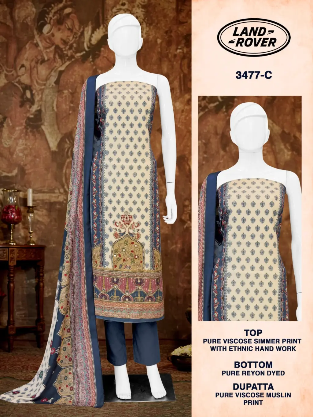 - Top Fabric: Pure Viscose Simmer Print With Ethnic Handwork
