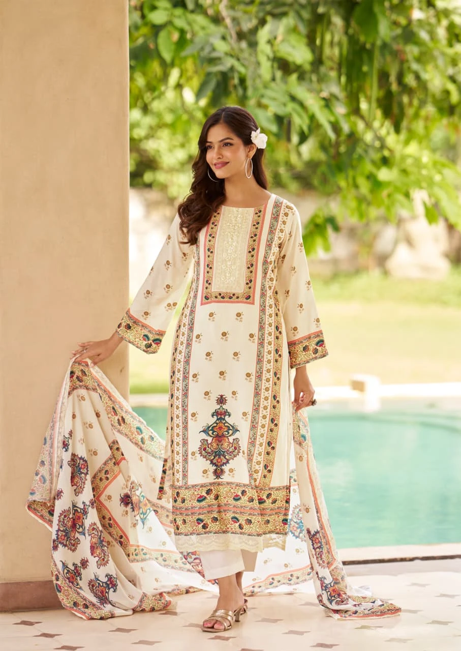 - Top Fabric: Pure Viscose Lawn Natural Fibre Breathable & Light Weight With Detailed Embroidery