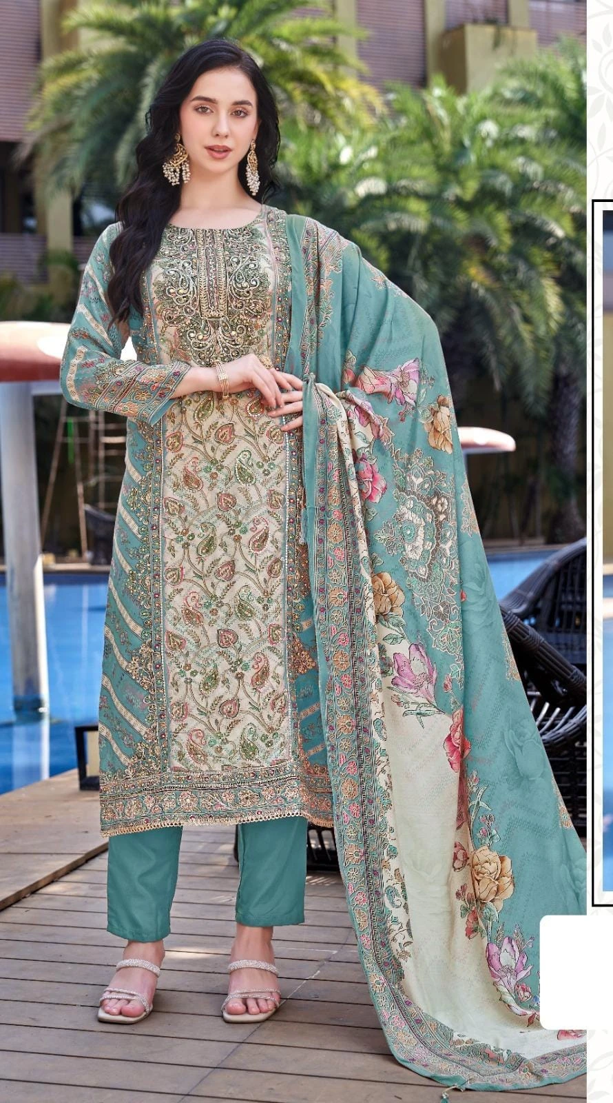 Top: Pure Viscose Muslin Dijital Print Aari Work Hend Work