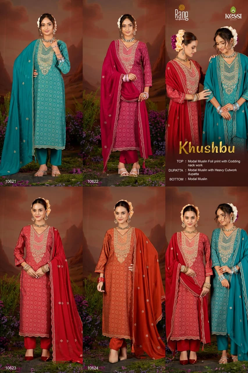 - Top Fabric: Modal Muslin Foil Print With Fancy Codding Work Nack