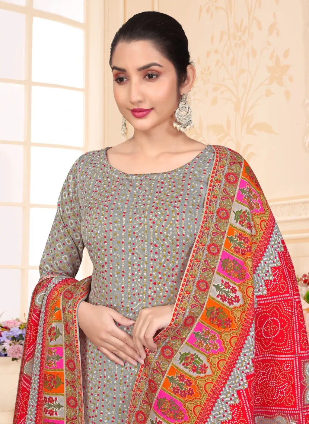 Top: Heavy Pashmina Printed With Neck Design