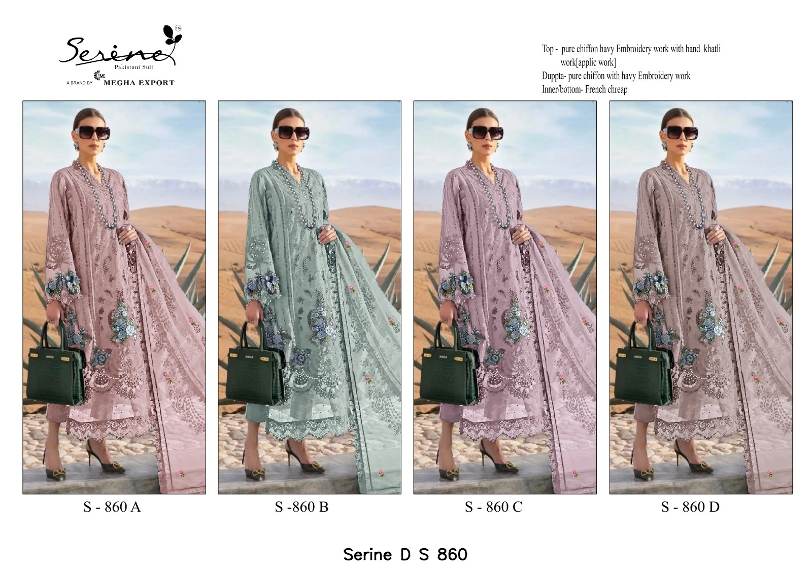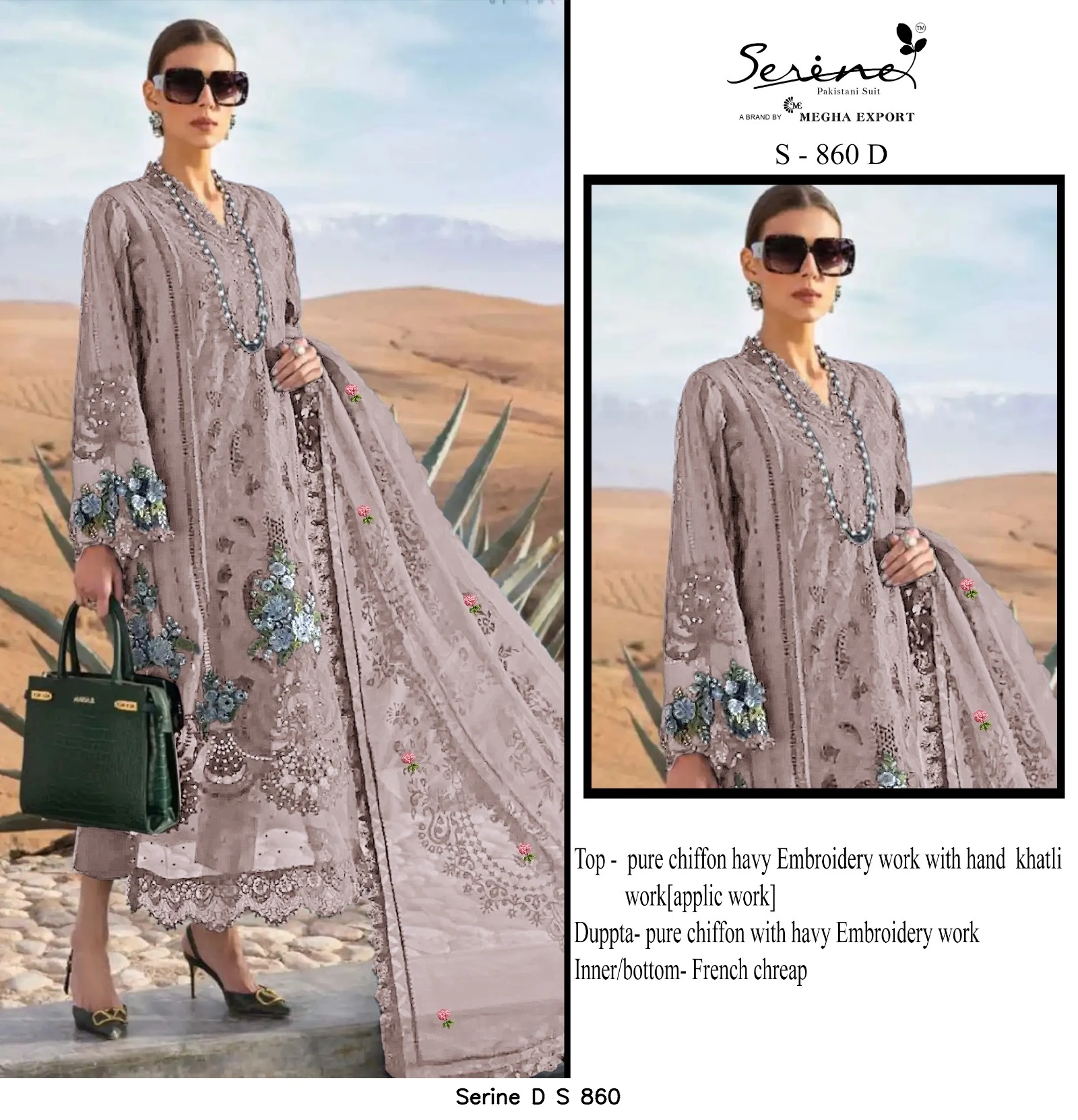 - Top Fabric: Pure Chiffon Heavy Embroidered With Hand Khatli Work (applic Work)