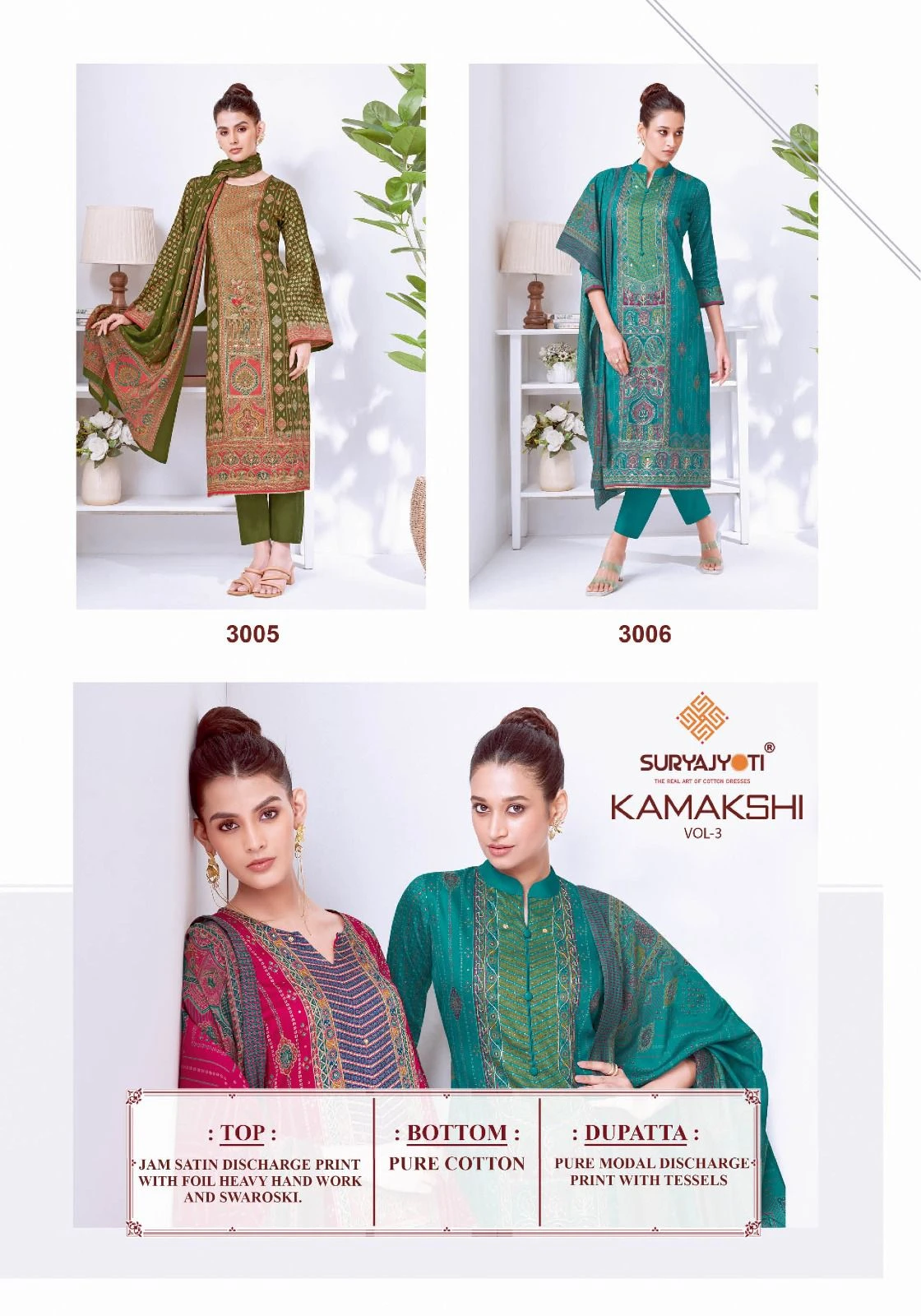 - Top Fabric: Jaam Satin Discharge Print With Foil Full Top Hand Work And Swarovski
