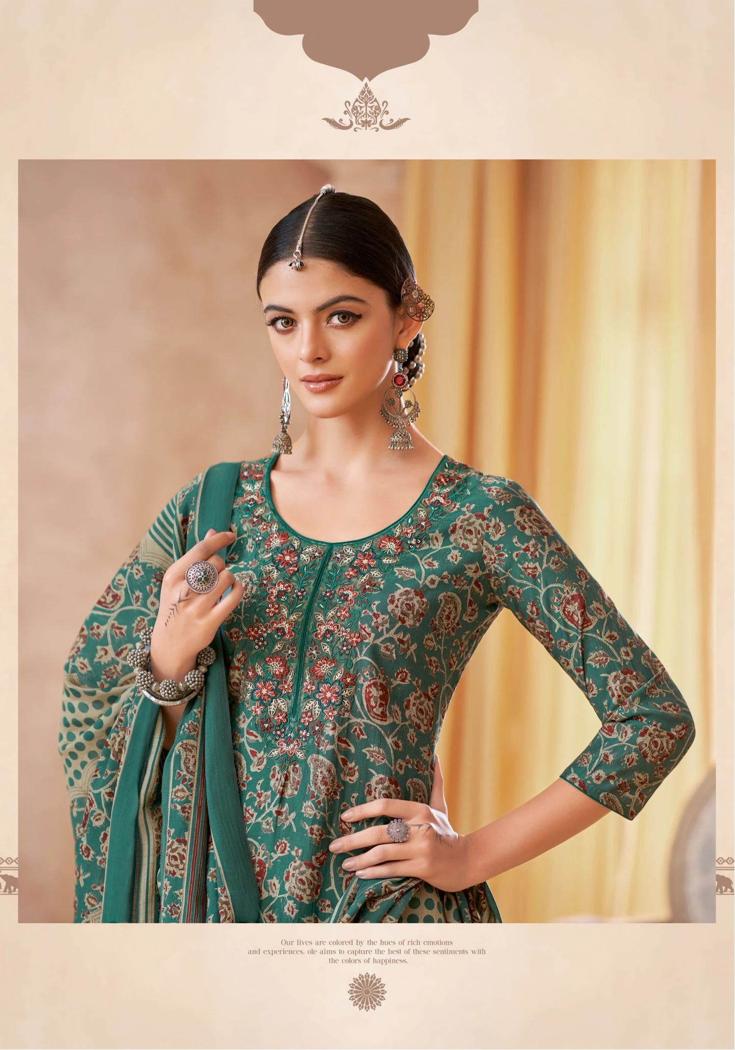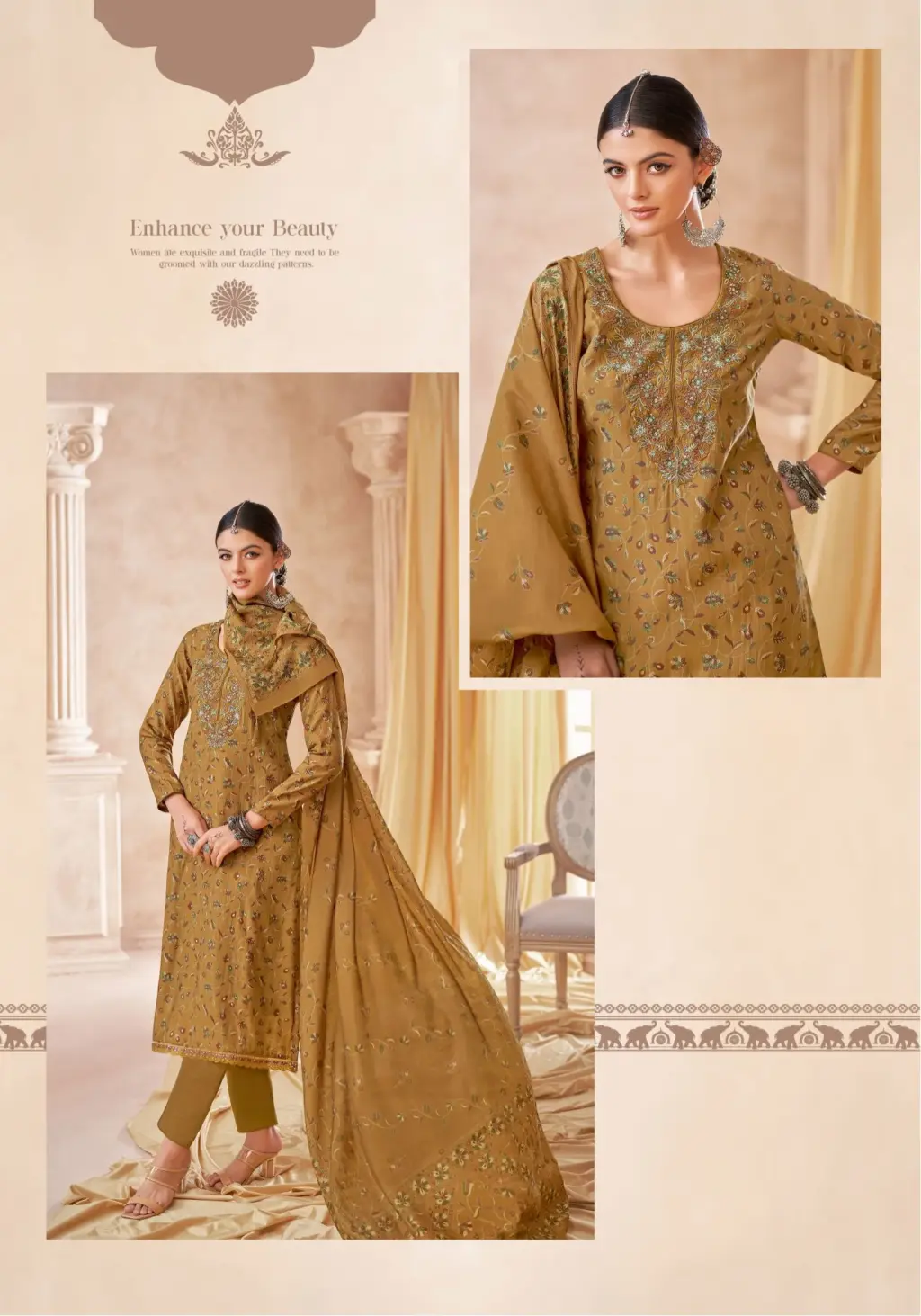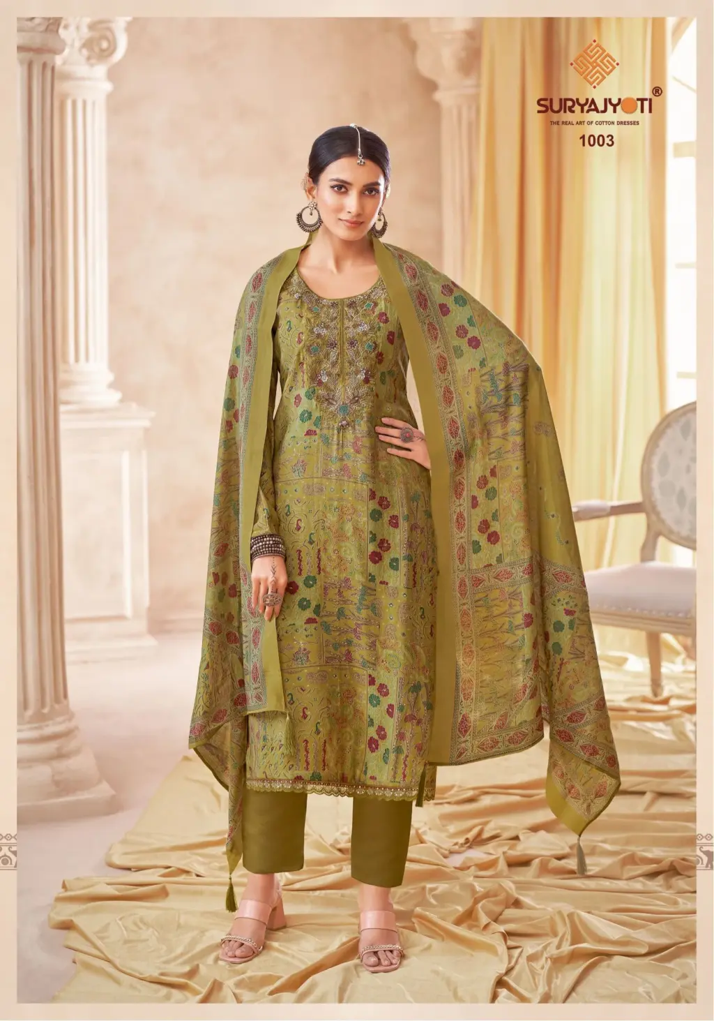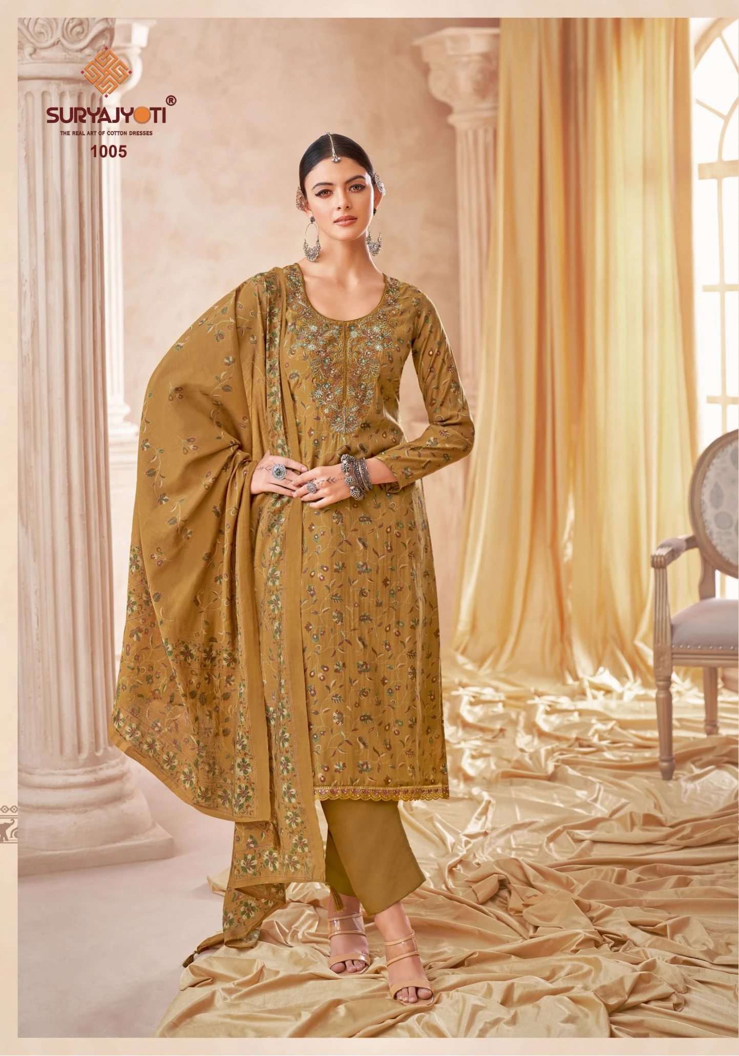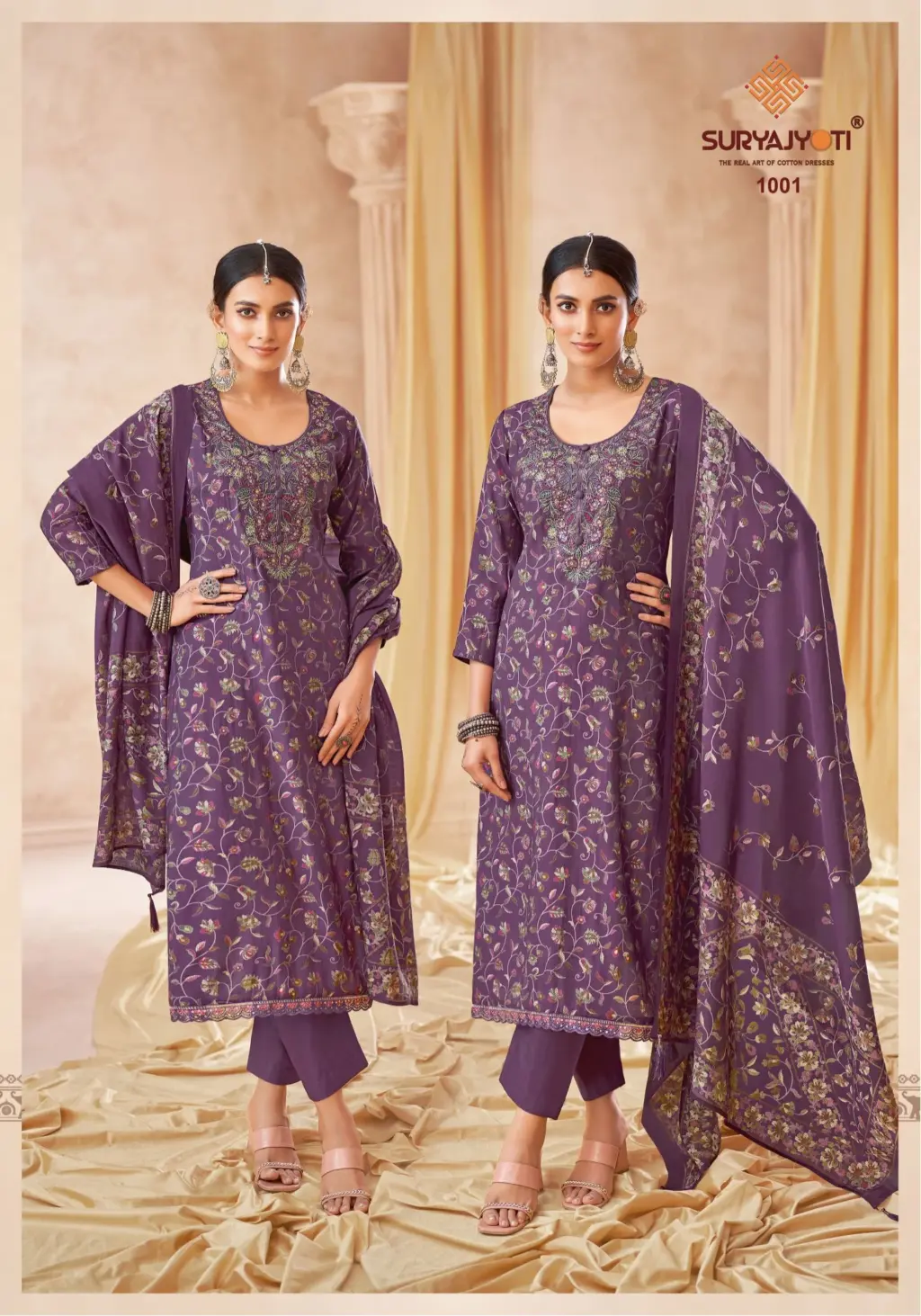 - Top Fabric: Pure Modal Discharge Print With Foil,Neck And Border Embroidery Work
